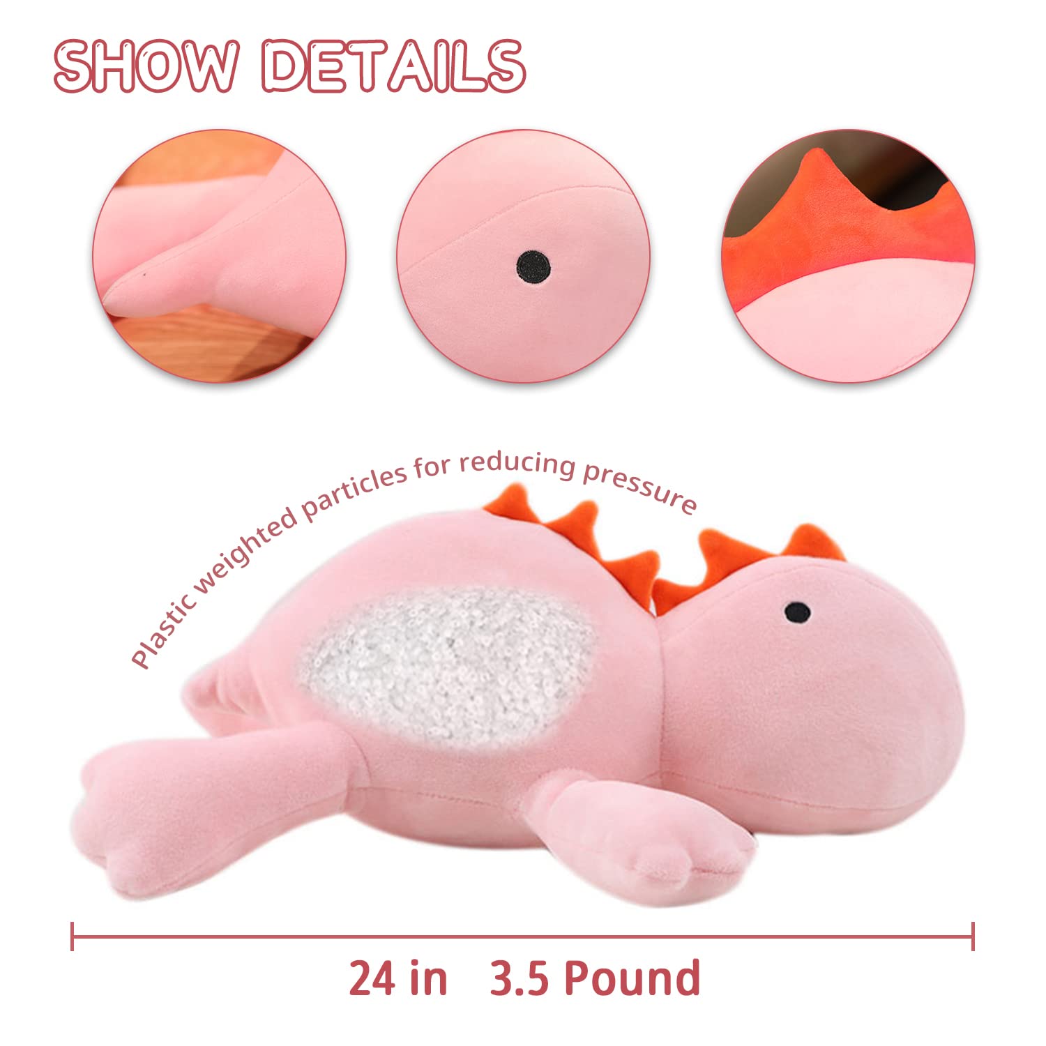 Zzdzsw 3lbs Weighted Dinosaur Plush 17 7 Cute Pink Dino Weighted Stuffed Animal Super Soft Weighted Plush Animal Throw Pillow Great Gift For Kids And Adults On Christmas Or Birthday